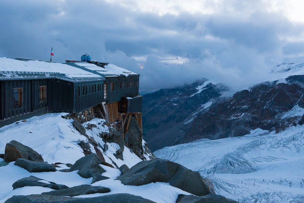 Situată la o altitudine de 4.554 de metri în Alpii italieni, Cabana Regina Margareta este cea mai înaltă cabană montană din Europa