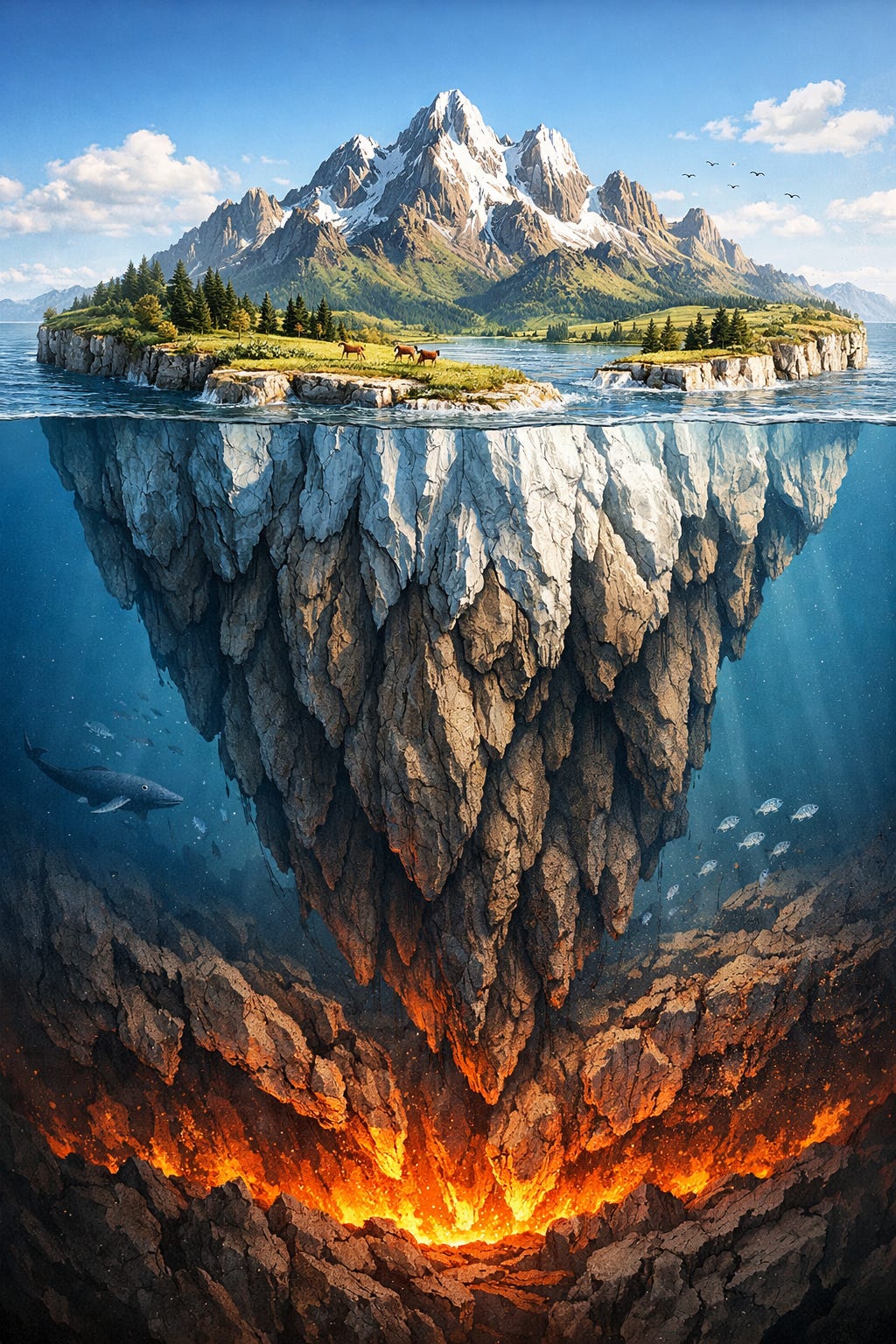 Not on water—but on a slowly flowing layer of rock deep within the Earth. And the tallest mountains we see above ground are only part of the story. Hidden below them are enormous “roots” that plunge deep into the planet.